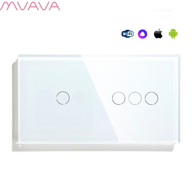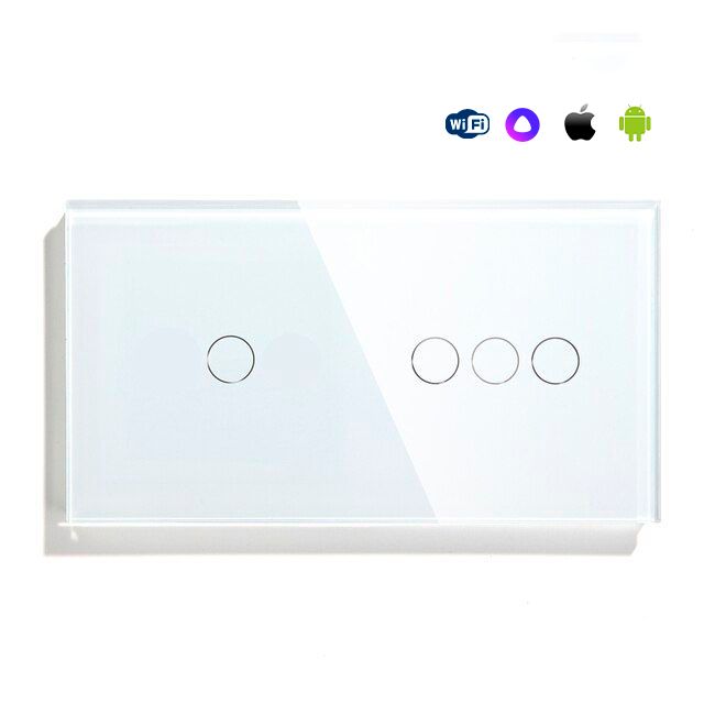 Сенсорный выключатель WiFi 4 клавиши 2 поста (1G+3G) стекло 157х86мм цвет белый