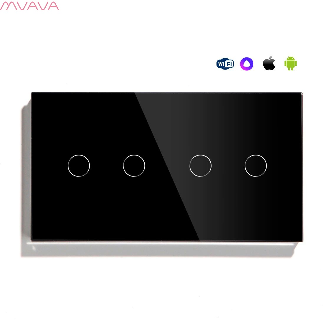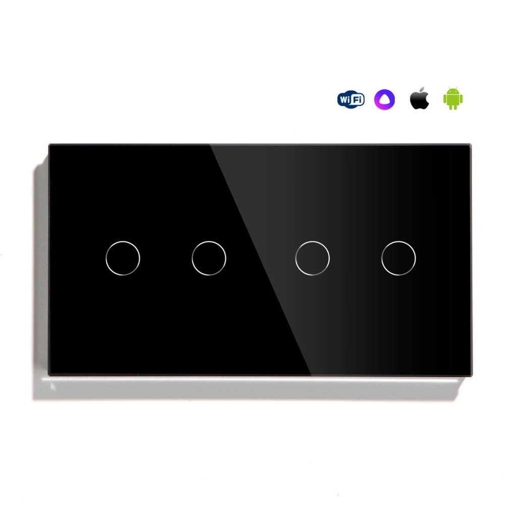 Сенсорный выключатель WiFi 4 клавиши 2 поста (2G+2G) стекло 157х86мм цвет черный