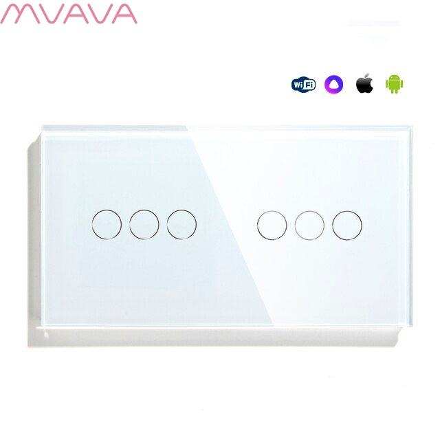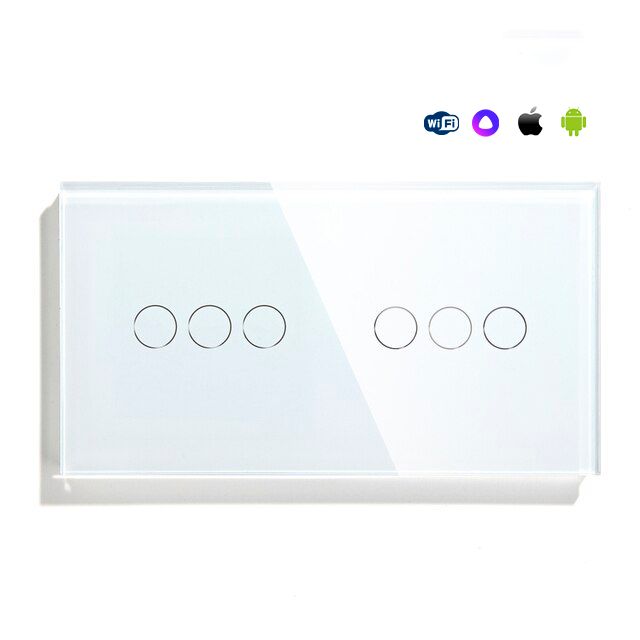 Сенсорный выключатель WiFi 6 клавиш 2 поста (3G+3G) стекло 157х86мм цвет белый
