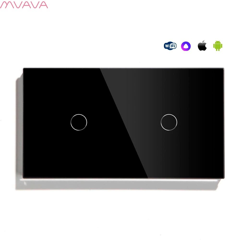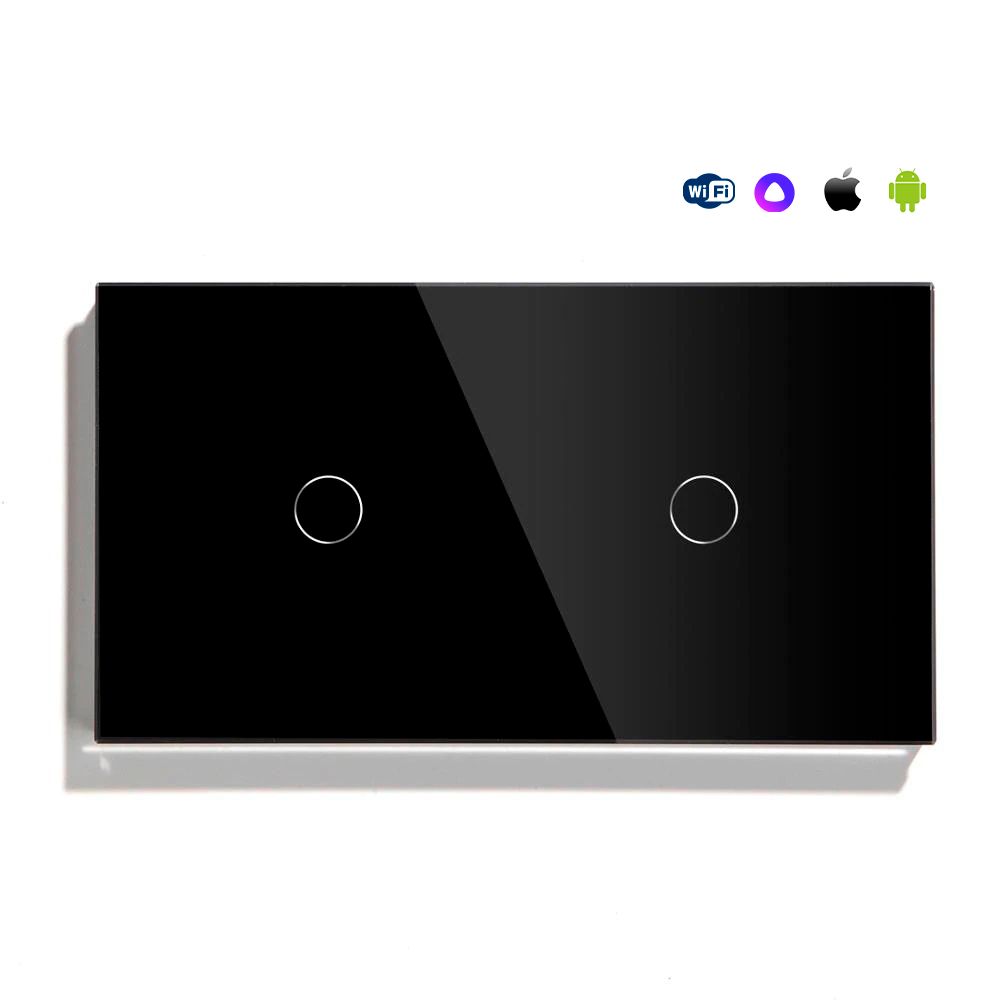 Сенсорный выключатель WiFi с нулем 2кл. 2поста (1G+1G) стекло 157х86мм цвет черный
