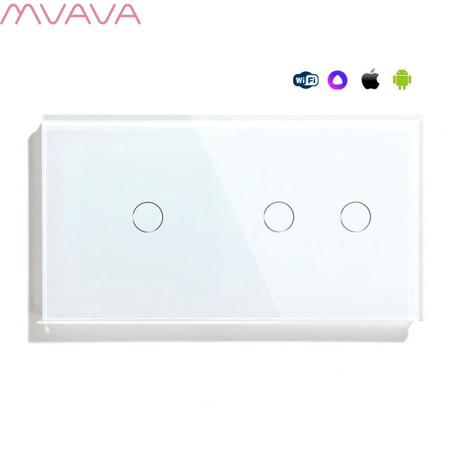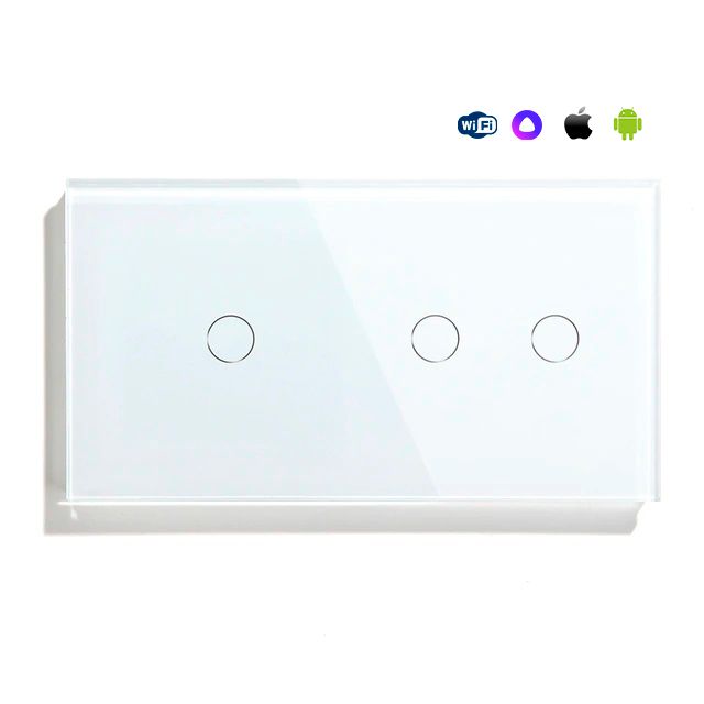 Сенсорный выключатель WiFi с нулем 3кл. 2поста (1G+2G) стекло 157х86мм цвет белый