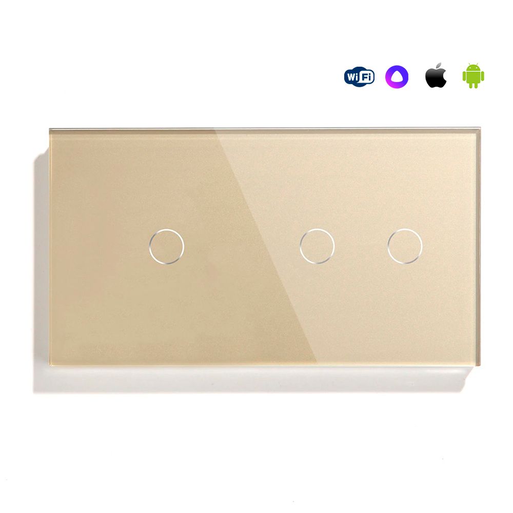 Сенсорный выключатель WiFi с нулем 3кл. 2поста (1G+2G) стекло 157х86мм цвет золотой