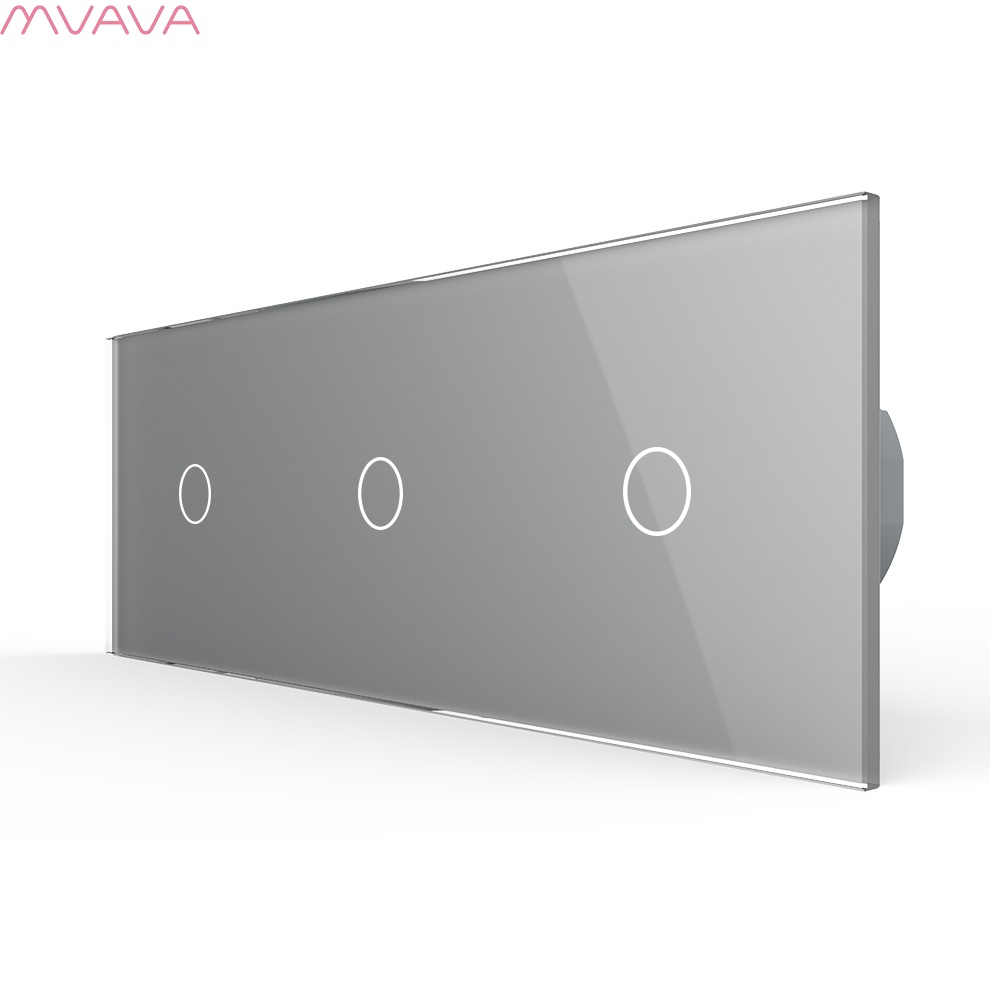 Сенсорный выключатель WiFi с нулем 3кл. 3поста (1G+1G+1G) стекло 2.5D 228х86мм цвет серый
