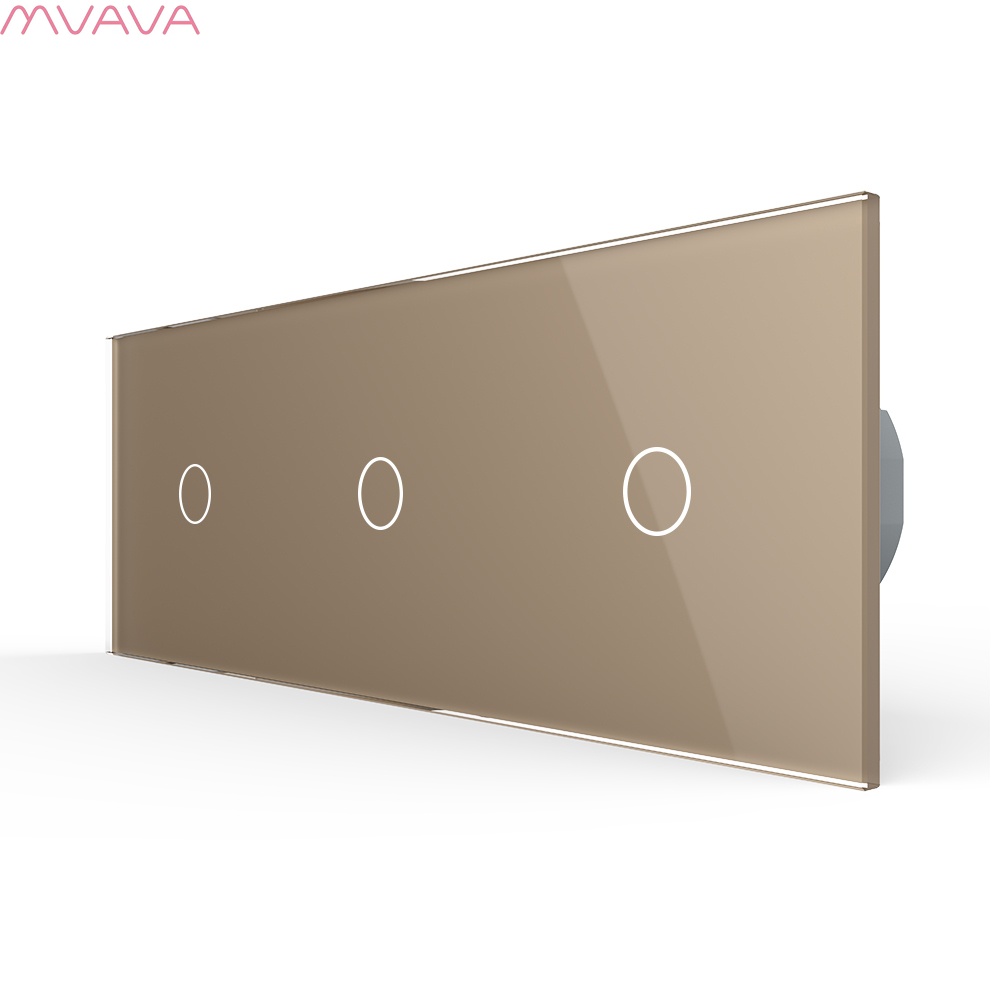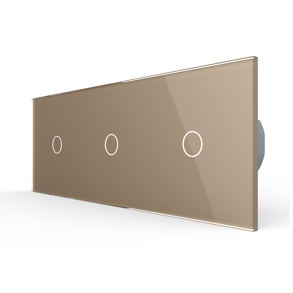 Сенсорный выключатель WiFi с нулем 3кл. 3поста (1G+1G+1G) стекло 2.5D 228х86мм цвет золотой