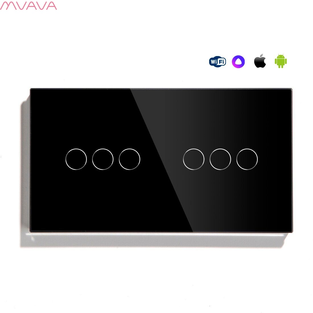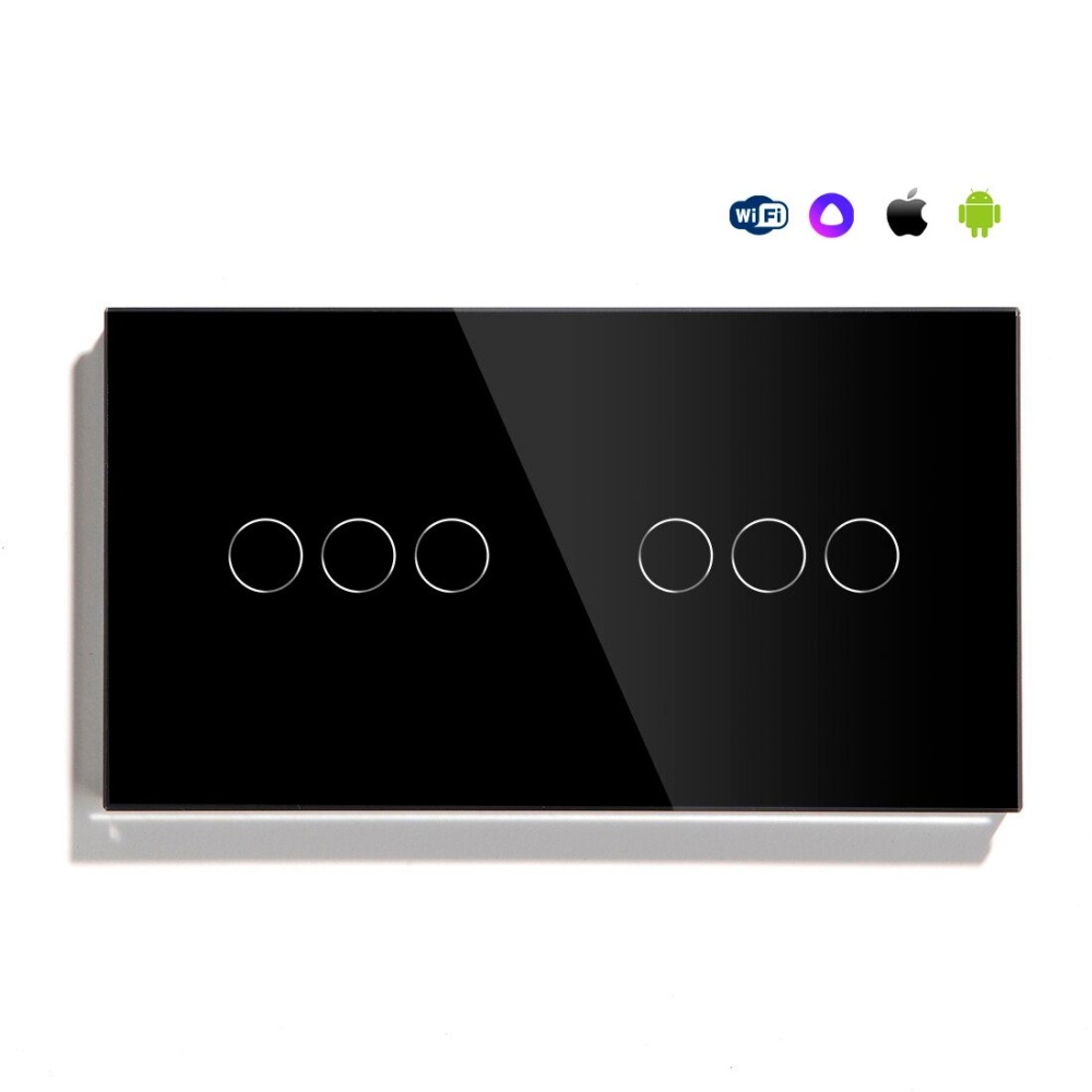 Сенсорный выключатель WiFi с нулем 6кл. 2поста (3G+3G) стекло 157х86мм цвет черный