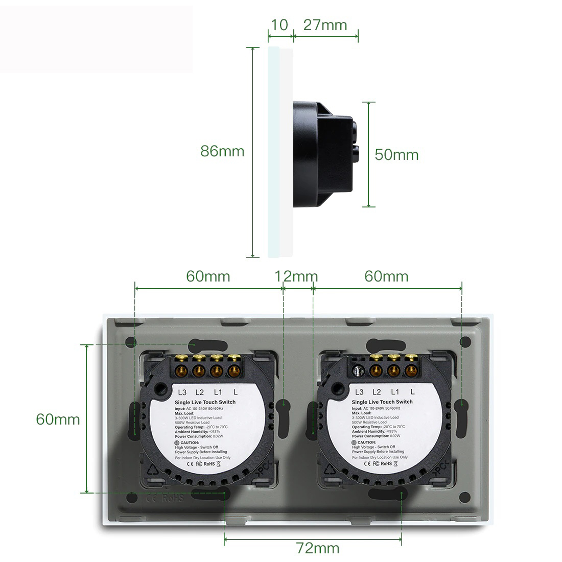 - Простой монтаж в стандартные подрозетники