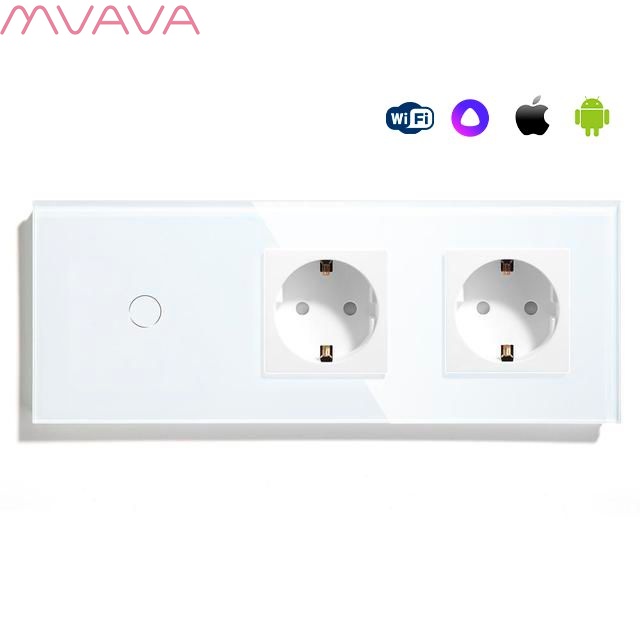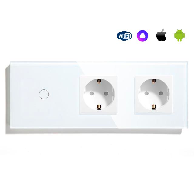 Сенсорный выключатель WiFi 1 клавиша 2 розетки 3 поста (1G+2EU) стекло 228х86мм цвет белый