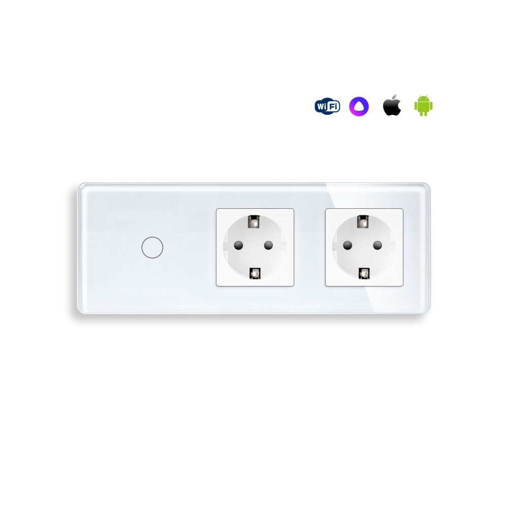 Сенсорный выключатель WiFi 1 клавиша 2 розетки 3 поста (1G+2EU) стекло 2.5D 228х86мм цвет белый