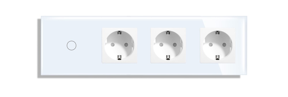 Сенсорный выключатель WiFi 1 клавиша 3 розетки 3 поста (1G+3EU) стекло 2.5D 299х86мм цвет белый