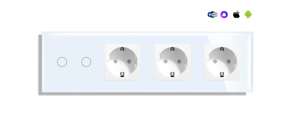 Сенсорный выключатель WiFi 2 клавиши 3 розетки 3 поста (2G+3EU) стекло299х86мм цвет белый