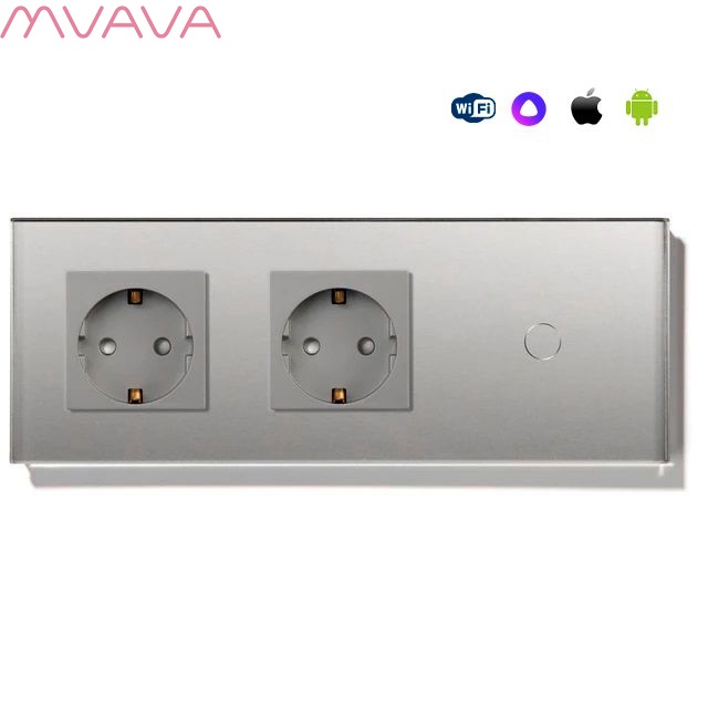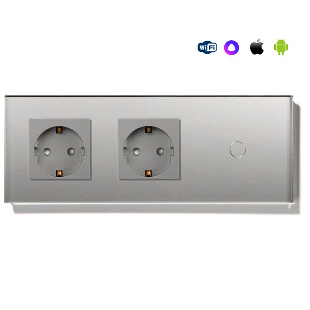 Сенсорный выключатель WiFi 2 розетки 1 клавиша 3 поста (2EU+1G) стекло 228х86мм цвет серый