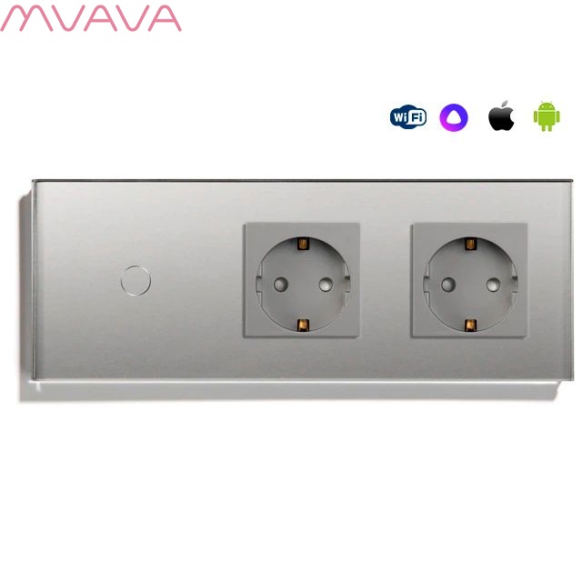 Сенсорный выключатель WiFi с нулем 1кл. 2розетки 3поста (1G+2EU) стекло 228х86мм цвет серый