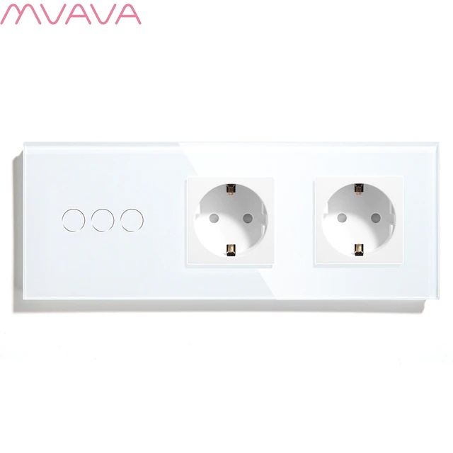 Сенсорный выключатель WiFi с нулем 3кл. 2розетки 3поста (3G+2EU) стекло 2.5D 228х86мм цвет белый