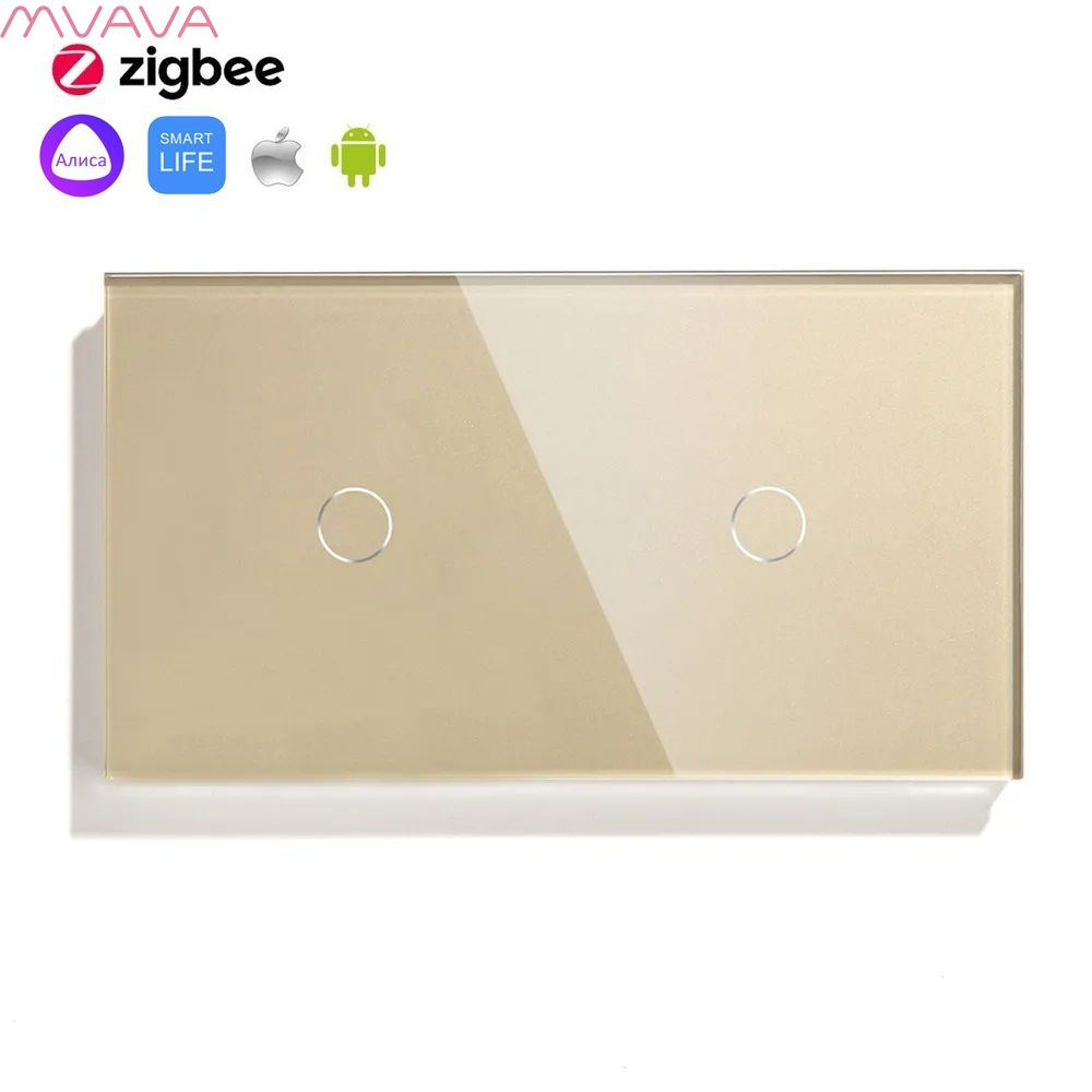 Сенсорный выключатель ZigBee MVAVA 2 кл. 2 поста (1G+1G) стекло 157х86мм цвет золотой