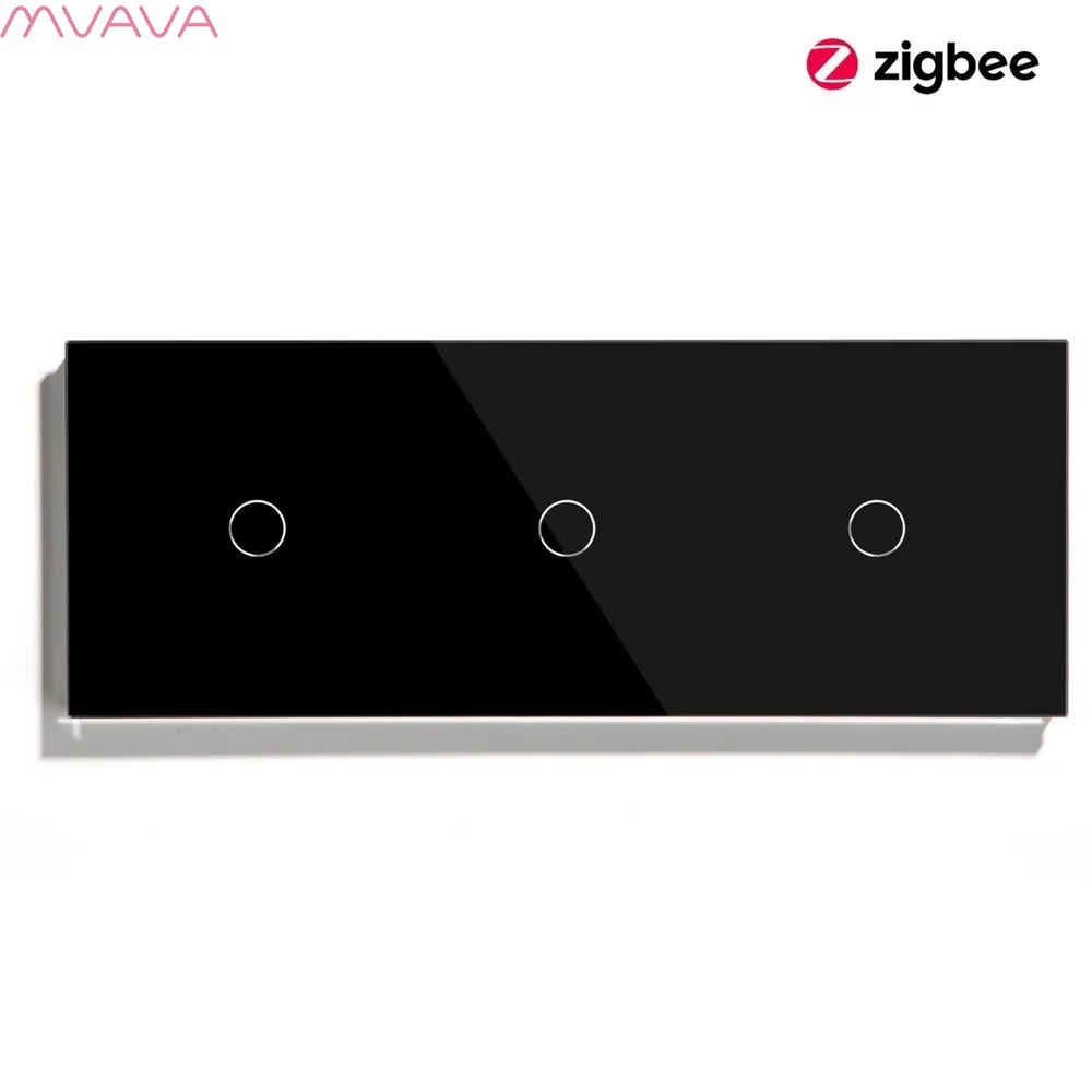 Сенсорный выключатель ZigBee MVAVA, 3 кл. 3 поста (1G+1G+1G) стекло 228х86мм цвет черный