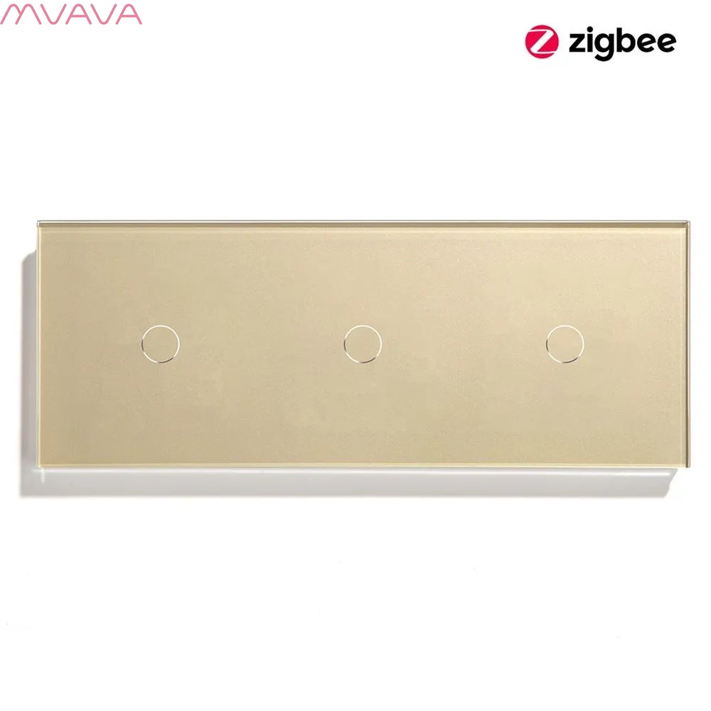 Сенсорный выключатель ZigBee MVAVA, 3 кл. 3 поста (1G+1G+1G) стекло 228х86мм цвет золотой