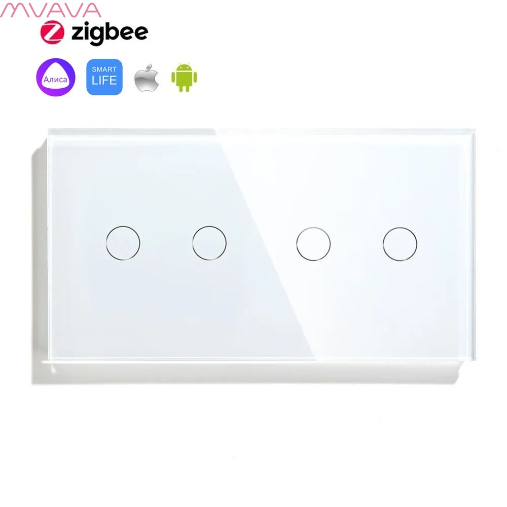 Сенсорный выключатель ZigBee MVAVA 4 кл. 2 поста (2G+2G) стекло 157х86мм цвет белый