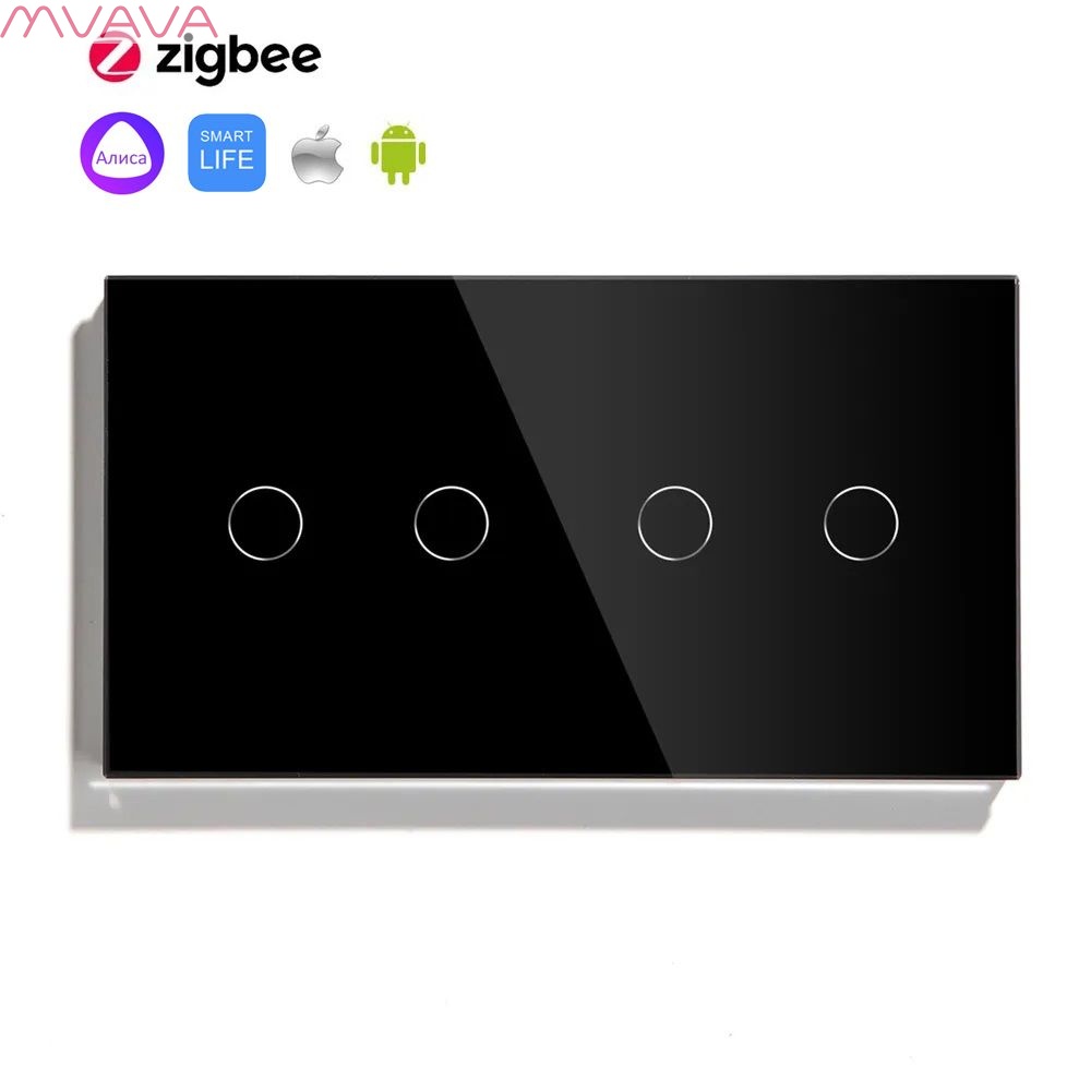 Сенсорный выключатель ZigBee MVAVA 4 кл. 2 поста (2G+2G) стекло 157х86мм цвет черный