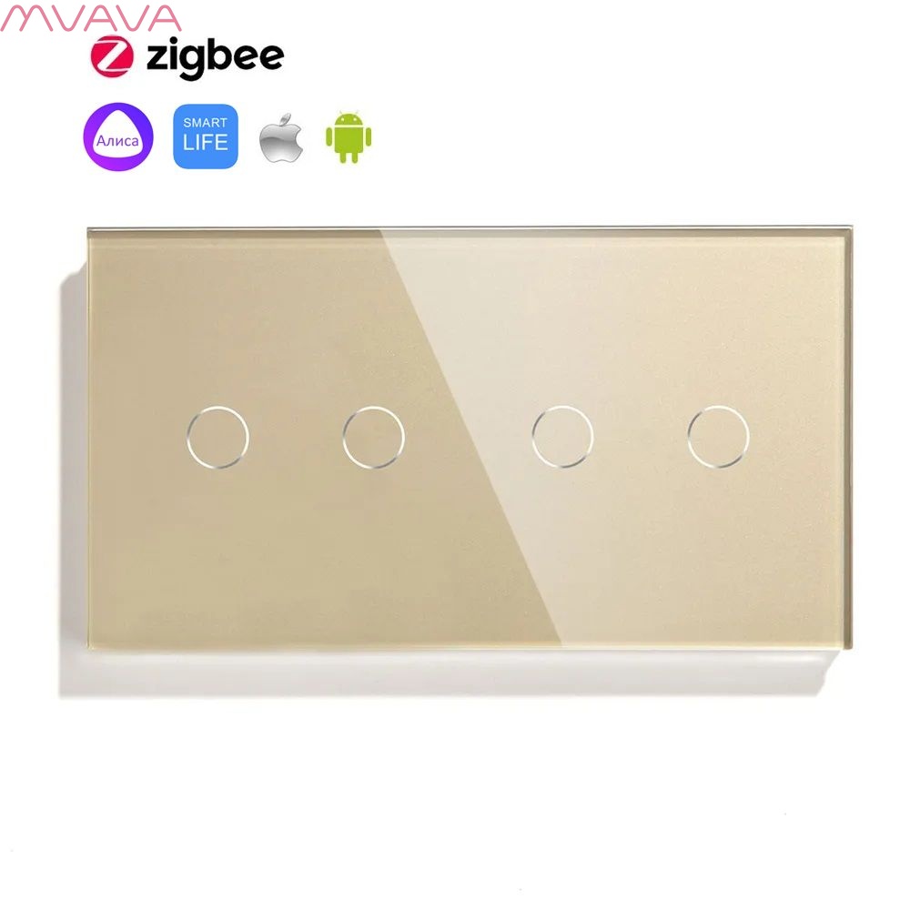 Сенсорный выключатель ZigBee MVAVA 4 кл. 2 поста (2G+2G) стекло 157х86мм цвет золотой