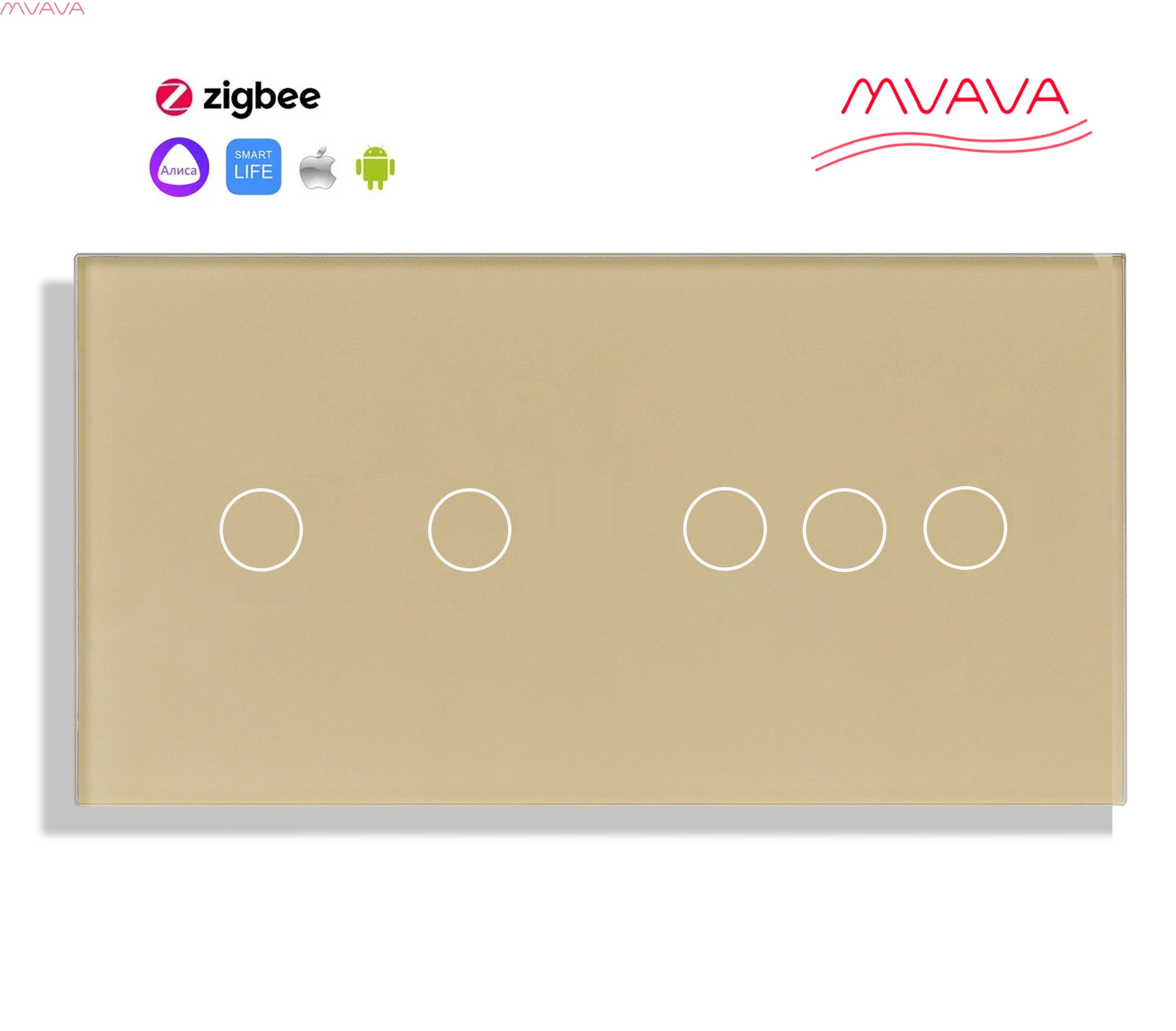 Сенсорный выключатель ZigBee MVAVA 5 кл. 2 поста (2G+3G) стекло 157х86мм цвет золотой