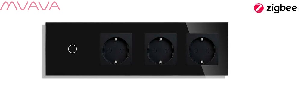 Сенсорный выключатель ZigBee MVAVA 1 кл. 3 розетки 4 поста (1G+3EU) стекло 299х86мм цвет черный