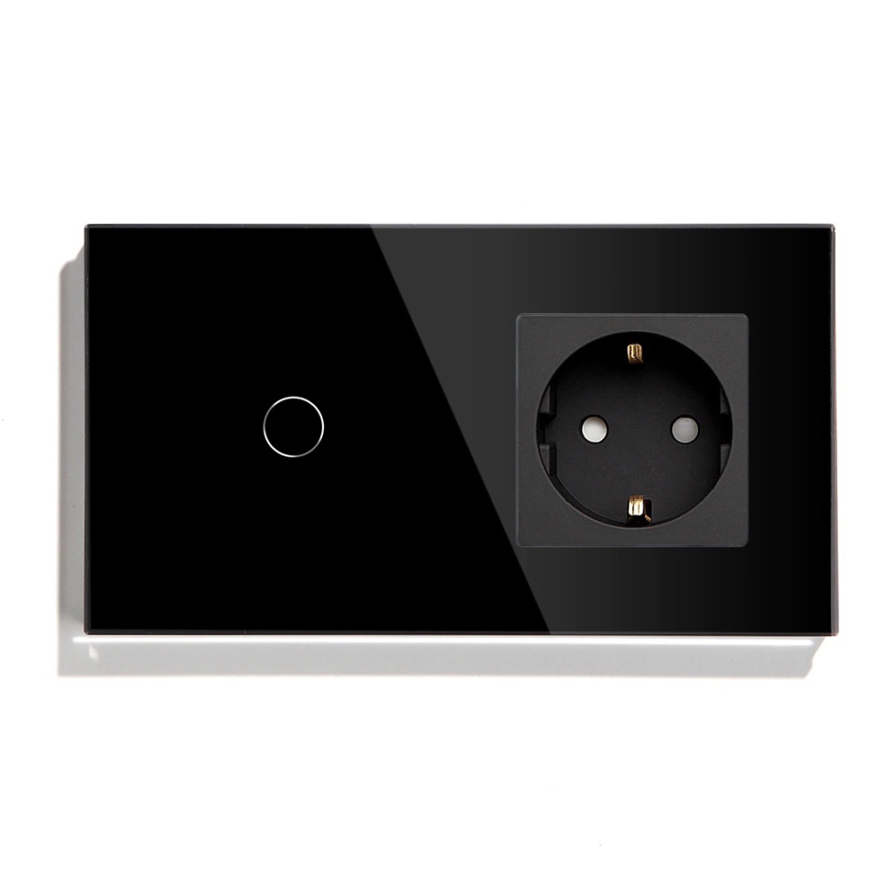Сенсорный выключатель ZigBee 3кл. 1 розетка, 2 поста (3G+1EU) стекло 157х86мм цвет черный