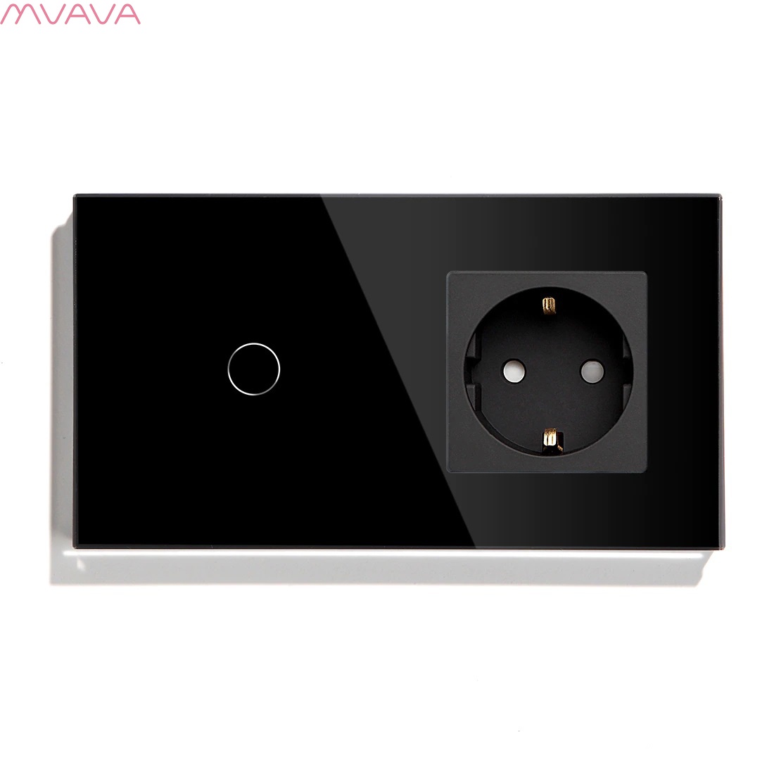 Сенсорный выключатель ZigBee MVAVA 3кл. 1 розетка, 2 поста (3G+1EU) стекло 157х86мм цвет черный
