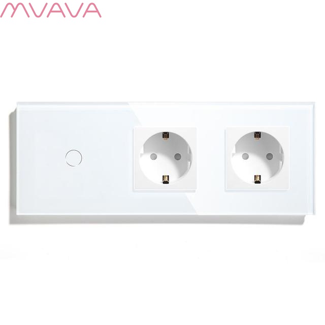 Сенсорный выключатель ZigBee MVAVA 3кл. 2 розетки, 3 поста (3G+2EU) стекло 228х86мм цвет белый