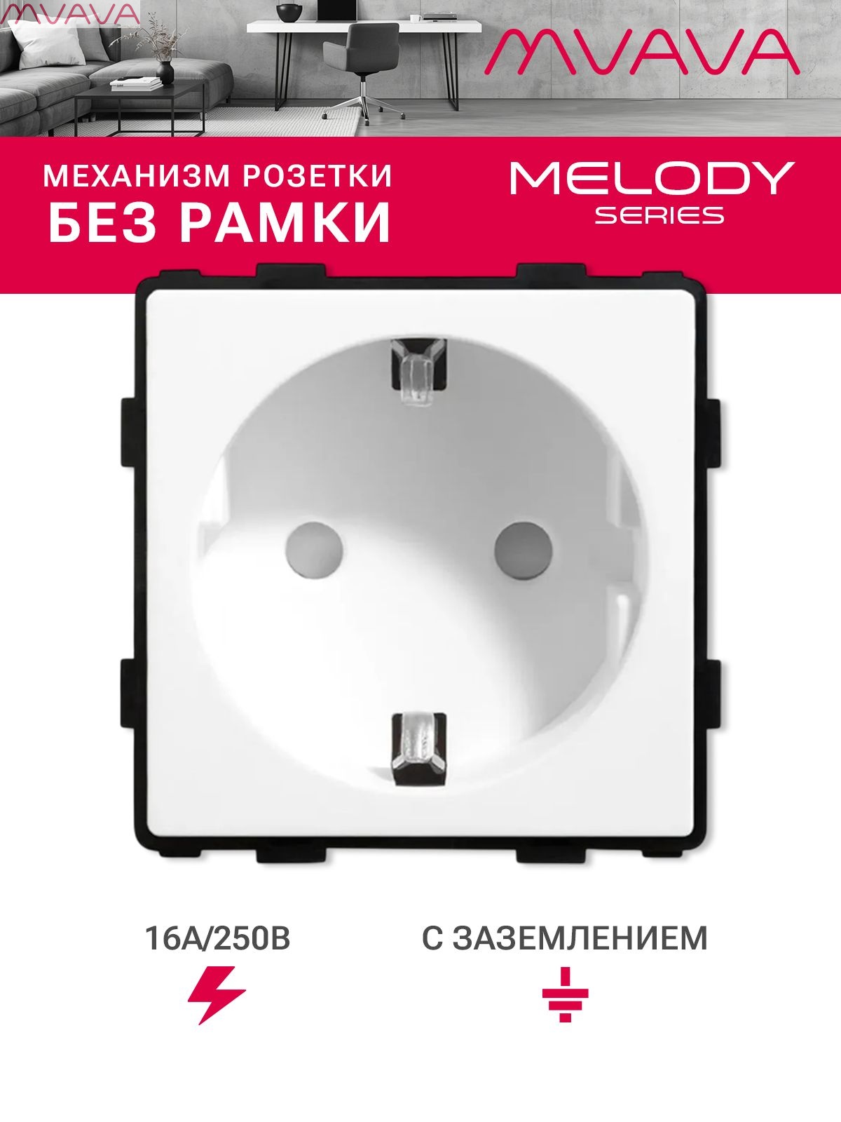 - Механизм розетки с заземлением , защитными шторками, предназначен для сетей 250 В, ток до 16 А.