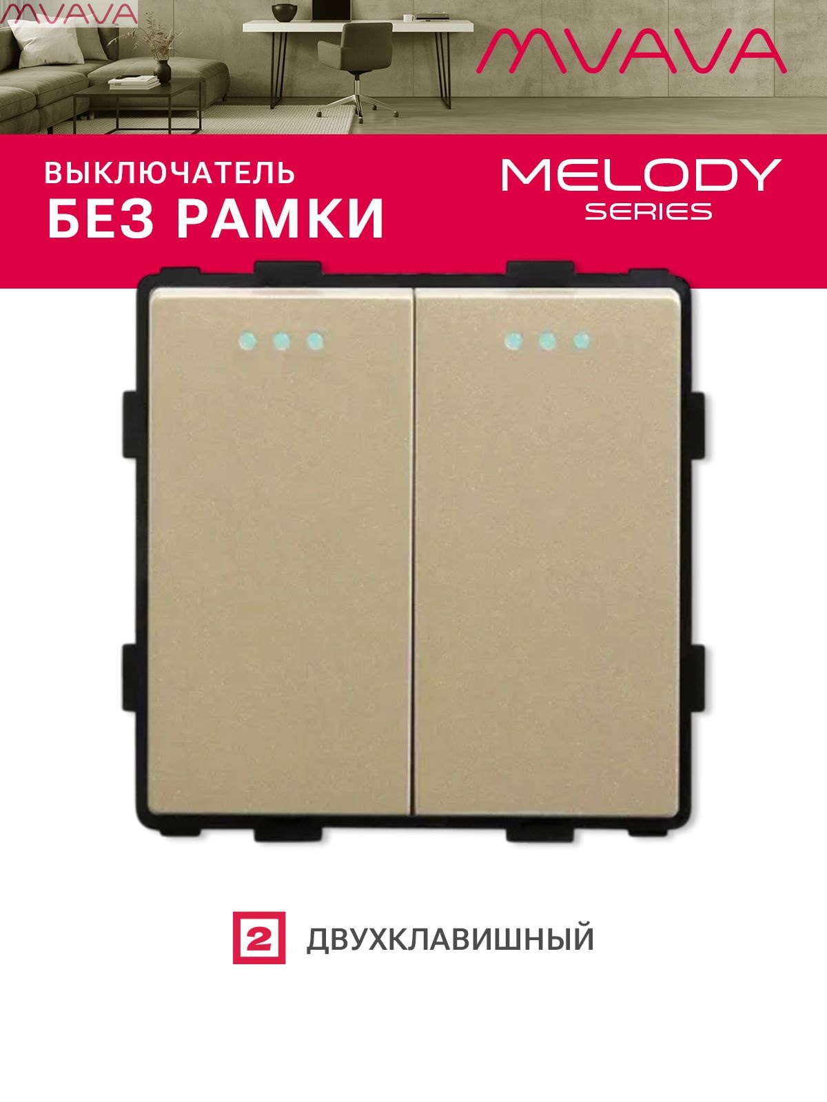 Выключатель, 2 клавиши, (без рамки) цвет золотой