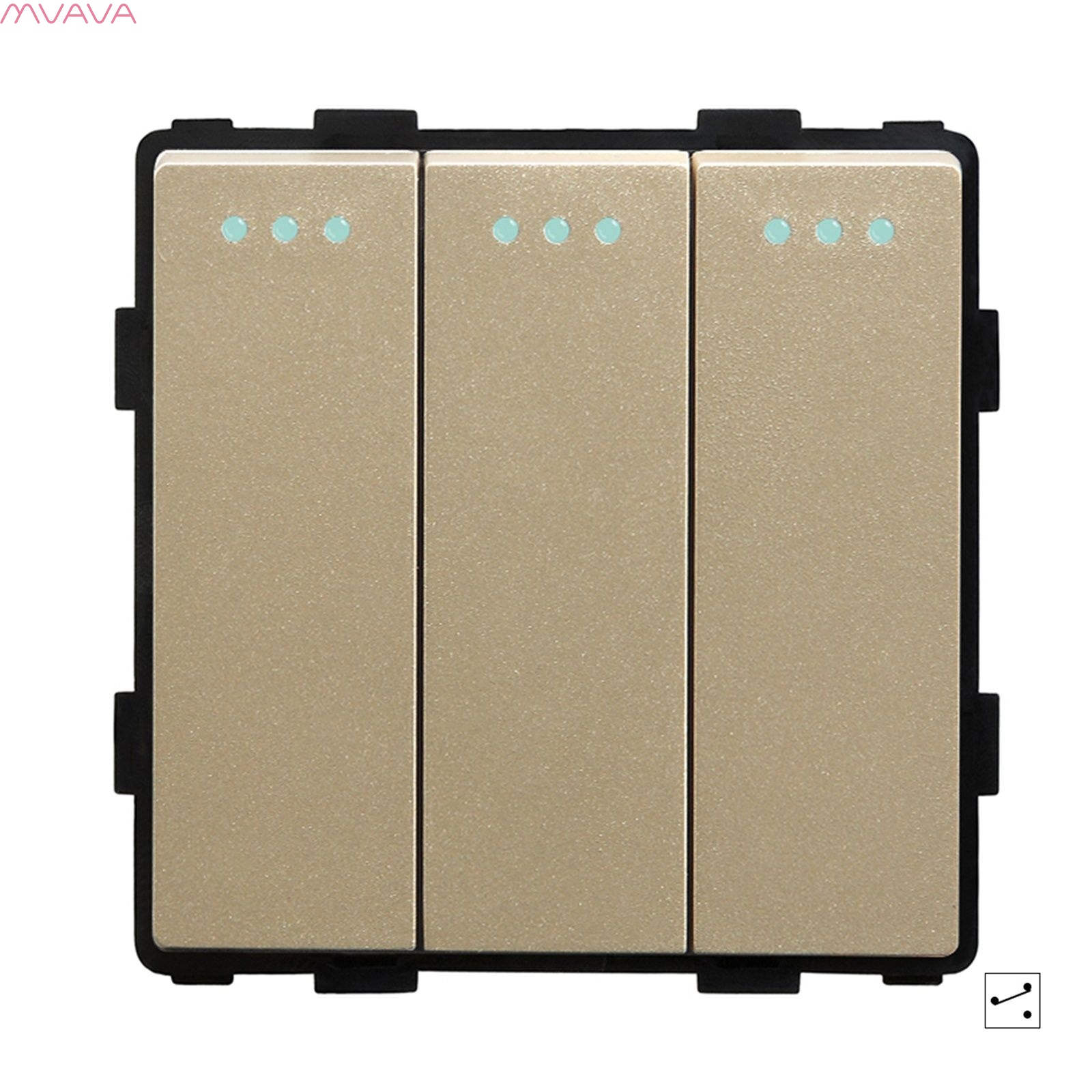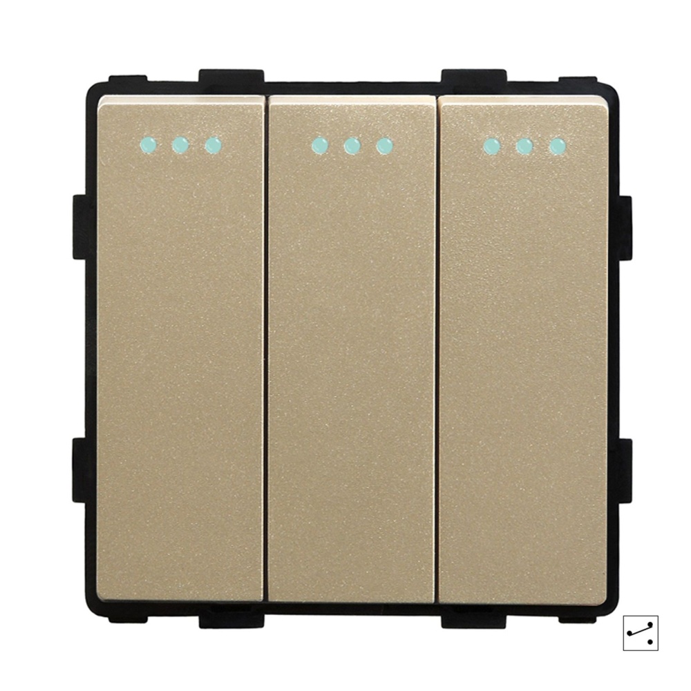 Выключатель проходной, 3 клавиши, (без рамки) цвет золотой
