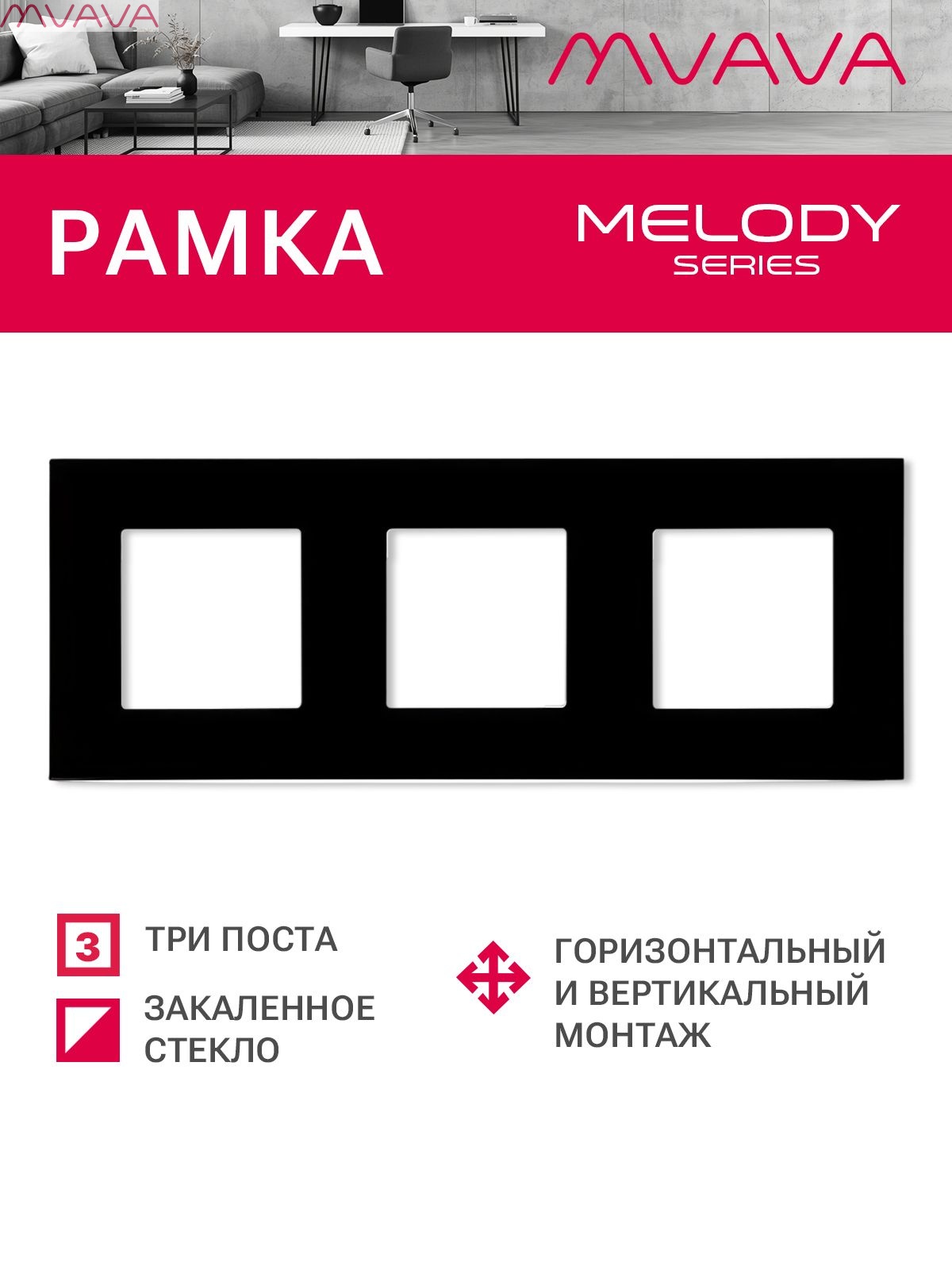Рамка 3 поста 228*86мм, стекло, цвет черный