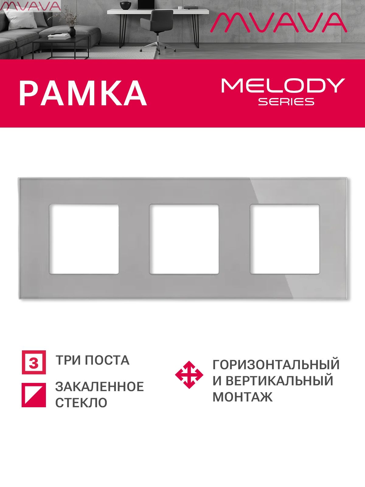 Рамка 3 поста 228*86мм, стекло, цвет серый