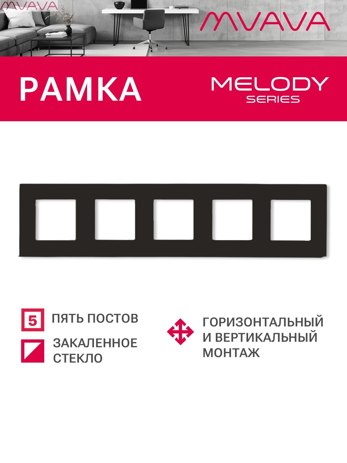 Рамка 5 постов 370*86мм, стекло, цвет черный